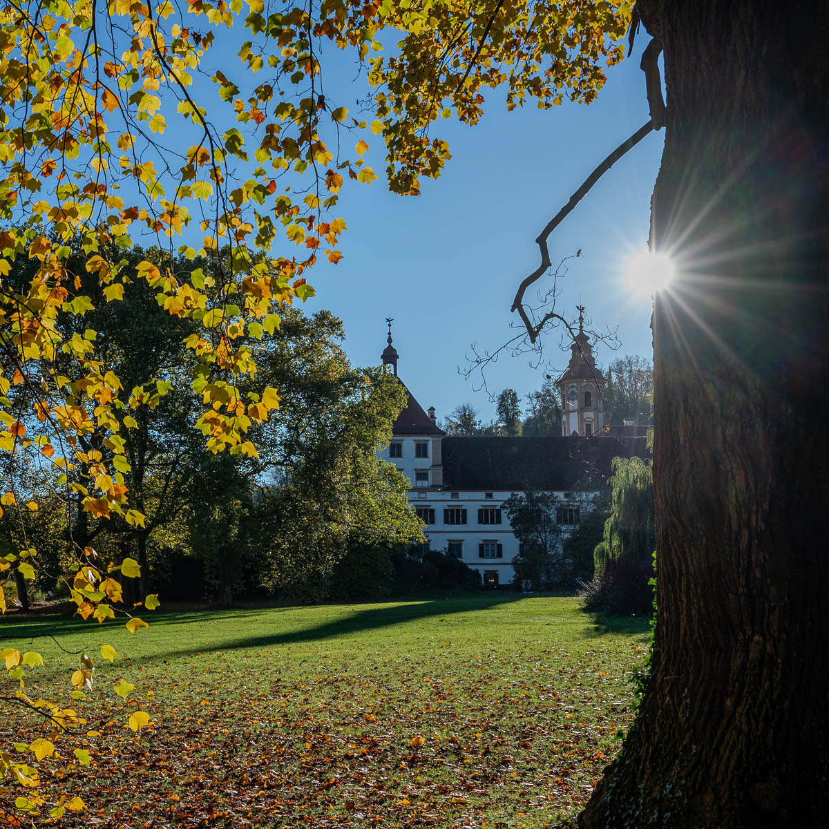Der Schlosspark Eggenberg ist im Herbst besonders eindrucksvoll. Die Alleen und der Pavillon bieten klare Achsen, die Pfauen liefern lebendige Motive.